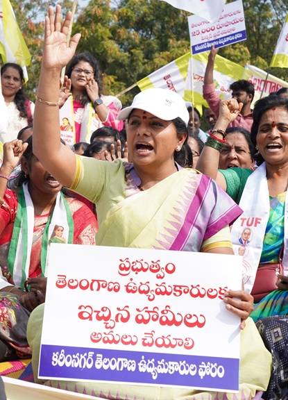 ఉద్యమకారుల పాలిట అసలు దయ్యం కేసీయారే. అవును.. ఈ మాట పరోక్షంగా అన్నది ఆయన బిడ్డే కవితనే. ఆయన పాలనలో ఉద్యమకారులు ఎంతటి గోసను అనుభవించారో ఆమె మరోసారి గుర్తు చేసింది. 1200 మంది తెలంగాణ ఉద్యమంలో అసులుబాస్తే.. కేసీఆర్ 540 మందికి మాత్రమే ఉద్యోగాలిచ్చి ఆదుకున్నాడని, మిగిలిన వారిని గాలికొదిలేశాడని పరోక్షంగా కేసీఆర్ సర్కార్పై దుమ్మెత్తిపోసిందామె. సెక్రటేరియట్లోకి ఉద్యమకారులను రానీయలేదని, మధ్యలో పెత్తనం ఇచ్చిన కొందరు ఉద్యమకారులను అవమానించి, బెదిరించారని కూడా బయటపెట్టిందామె. బుధవారం కరీంనగర్ జిల్లా మానకొండూరులో ఆమె తెలంగాణ ఉద్యమకారులతో కలిసి భూ పోరాటానికి శ్రీకారం చుట్టింది. కాంగ్రెస్ సర్కార్ తన మ్యానిఫెస్టోలో ఉద్యమకారులకు ఇస్తామన్న సంక్షేమ పథకాలు అమలు చేయాలని, 250 గజాల జాగాను వెంటనే ఇవ్వాలని డిమాండ్ చేస్తూ ఆమె ఈ ఉద్యమానికి పూనుకున్నది. అయితే పనిలో పని ఆమె తన తండ్రి గవర్నమెంటును దునుమాడింది.
