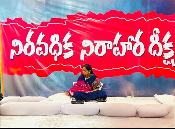 ఖమ్మం వెలుగుమట్ల బాధితులకు న్యాయం జరిగే వరకు తన పోరాటం ఆగదని ప్రకటించిన కవిత.. నిరవధికంగా నిరాహారదీక్షను కొనసాగిస్తున్నారు. బుధవారంతో ఆమె దీక్ష మూడో రోజు చేరుకున్నది. ఖమ్మం నుంచి నేరుగా ఆమెను పోలీసులు హైదరాబాద్కు తీసుకురావడంతో జాగృతి కార్యాలయంలోనే ఆమె దీక్షకు దిగారు. . సర్కార్ దిగొచ్చేదాకా దీక్ష వదిలేదే లేదని.. స్థలం మారినా తన నిర్ణయం మారదని ఆమె ప్రకటించారు. ఆమె దీక్షకు ప్రజా సంఘాల నుంచి, తెలంగాణ ఉద్యమకారుల నుంచి పెద్ద ఎత్తున మద్దతు లభించింది. కవితకు పార్టీలకతీతంగా మద్దతు లభిస్తున్నది.